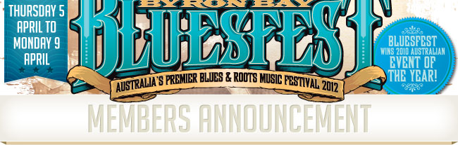 It's the festivals biggest announcement yet for 2012, presenting a further 30 artists, including some very special headliners and the return of previous favourites and opening the Bluesfest door to some exciting new discoveries.
