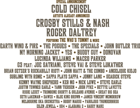 Festival director Peter Noble says, "We've unveiled some amazing headliners and celebrated bands coming to Byron Bay for Bluesfest 2012, but now our fourth announcement is the final touch which really tips the scales into overdrive.